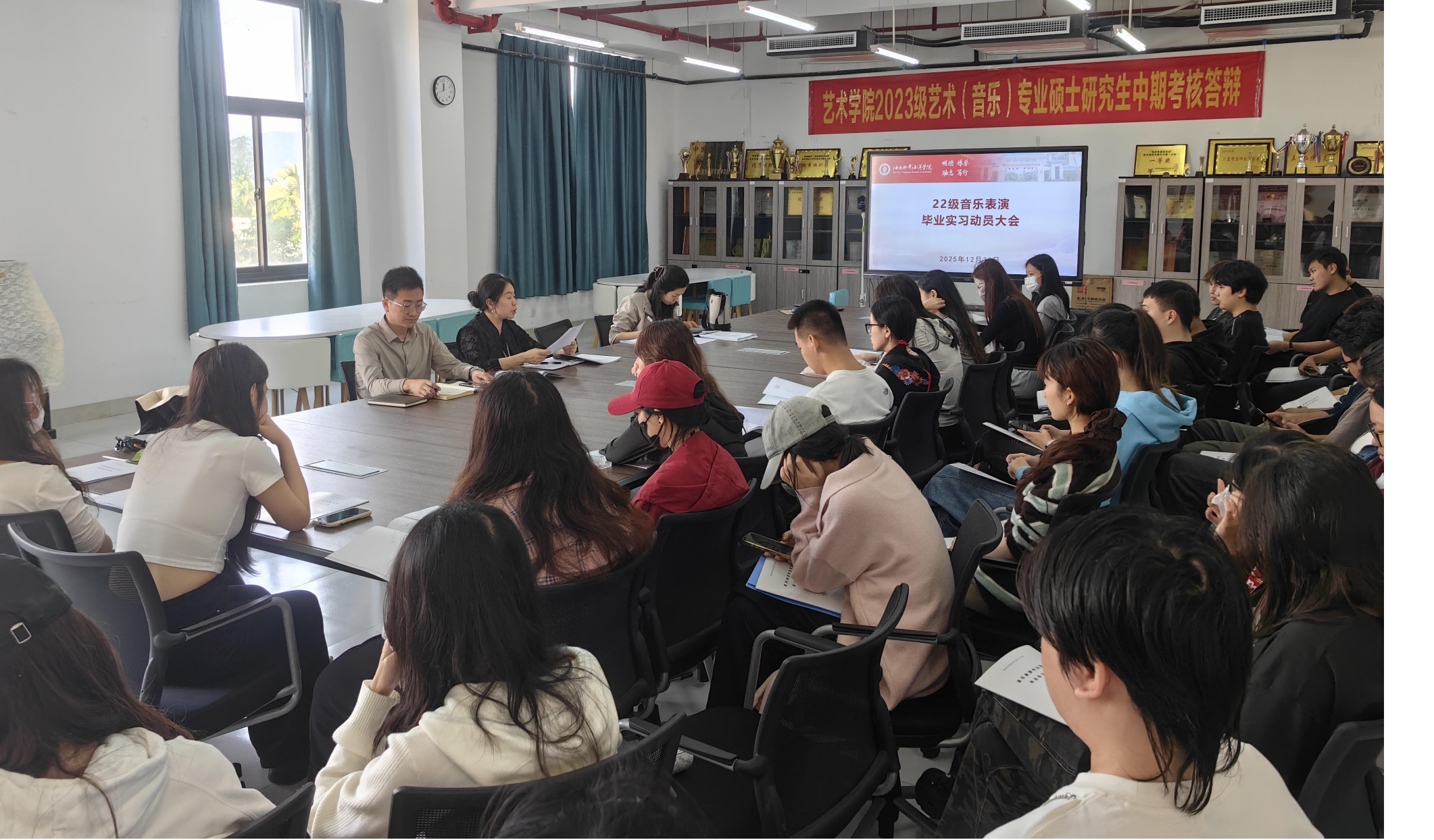 为切实做好2022级音乐表演专业毕业实习工作,明确实习任务要求,保障实习工作有序推进,近日,艺术学院召开音乐表演专业毕业实习动员大会。副院长申慧磊、党总支副书记张宇出席会议,音乐系实践课程组长黄颖主持,全体22级音乐表演专业应届毕业生参会。