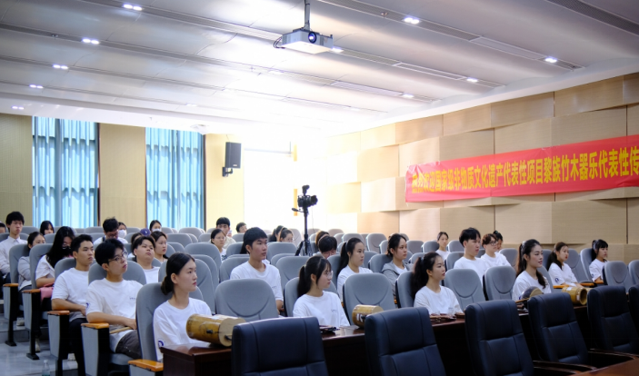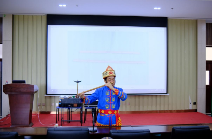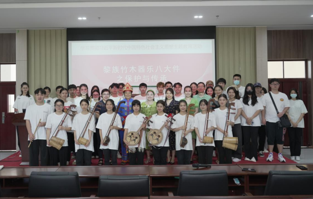 党的十八大以来,以习近平同志为核心的党中央高度重视非物质文化遗产保护传承工作,从坚定文化自信、实现中华民族伟大复兴的全局和战略高度,作出一系列重大决策部署,非遗保护事业铺展开新时代传承弘扬中华优秀传统文化的生动画卷。十年来,我国非遗保护传承取得显著成效。为践行国家非物质文化遗产保护与传承工作,5月31日上午10:00在我校人文楼103报告厅,艺术学院特邀国家级非物质文化遗产黎族竹木器乐代表性传承人黄照安先生为我院师生开展了“黎族竹木器乐八大件之保护与传承”讲座交流会。