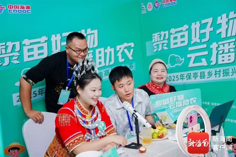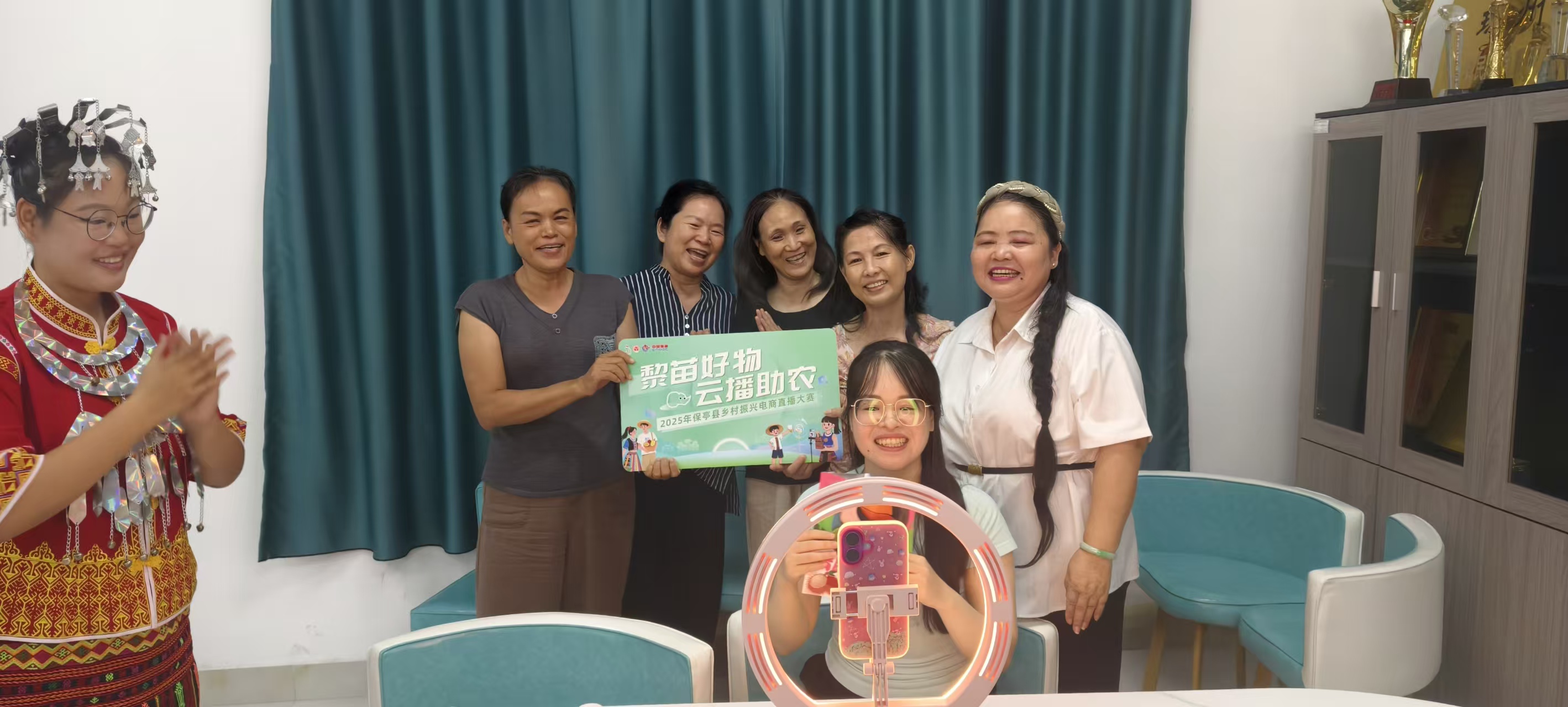 近日,由共青团保亭县委、保亭妇女联合会、中国海洋石油集团有限公司联合主办的“黎苗好物・云播助农”2025年保亭乡村振兴电商直播大赛圆满落幕。据悉,该大赛于9月启动,学校就业办公室黄锋老师主抓,艺术学院黄丽华书记组织并指导了三个小组10名同学参加初赛,总共有65个队伍参加初赛,最后由艺术学院学生林郁超,旅游学院学生何俊、高杨钰等组成的直播小组进入决赛。该项比赛期间学生参赛选手共发布主题短视频10条,直播8场。