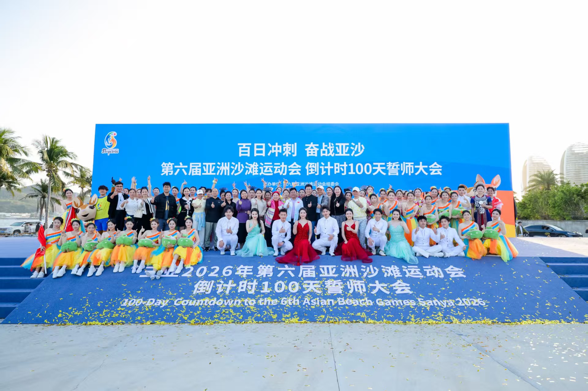 2026年1月12日17点,“百日冲刺 奋战亚沙”第六届亚洲沙滩运动会倒计时100天誓师大会在三亚凤凰岛隆重启幕,海南省委常委、三亚市委书记王祺扬出席并致辞,吹响亚沙会的冲锋号角。海南热带海洋学院艺术学院119名师生应邀参演,潜心策划三个精品节目,用艺术之力为这场海南自贸港封关运作后的首场国际大型综合性体育赛事助力喝彩。