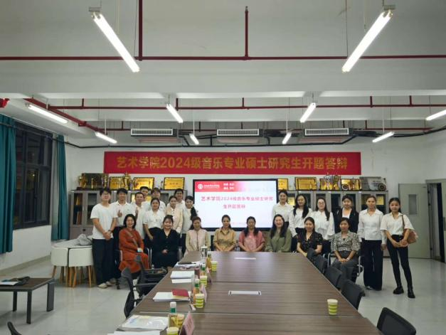 2025年12月3日下午,海南热带海洋学院艺术学院于艺术楼301会议室,举办了2024级音乐硕士研究生学位论文开题答辩会。本次答辩于下午14:30准时开始,历经六个小时,于20:30结束。开题答辩评委会由王丽伟教授担任评委主席,成员郑红教授、蔡华明教授、刘莉莉教授、申慧磊副教授、黄婷副教授、韩沙霖副教授组成。艺术学院党总支黄丽华书记莅临现场关怀。音乐硕士全体导师和2025级音乐硕士研究生到场观摩。答辩会由蔡华明教授主持。