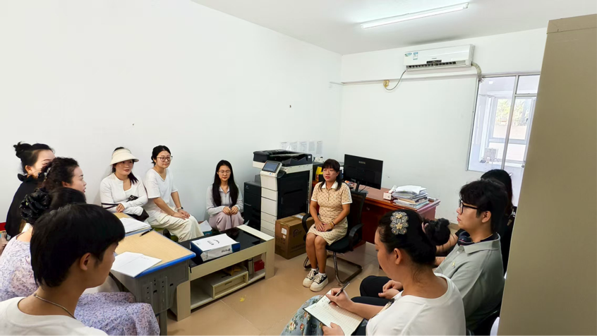 结束保亭六弓乡中心学校的对接后,团队马不停蹄奔赴第二站——五指山通什中心学校。该校领导同样给予热情接待,并与带队教师及三名驻校实习生围绕“三习”活动开展专题研讨。带队教师与校方共同梳理了学校音乐教学的薄弱环节,明确了实习生“三习”的重点方向:见习阶段需深入了解课堂流程与学生需求,实习阶段要参与实际教学、协助开展音乐活动,研习阶段则需结合教学实践总结经验、提出教学优化建议。老师们还反复叮嘱实习生,要在18周实践中时刻保持安全意识,以专业能力助力学校丰富音乐课程内容,如引入乐器教学、课桌舞编排、音乐欣赏等多样化形式,激发学生艺术兴趣。